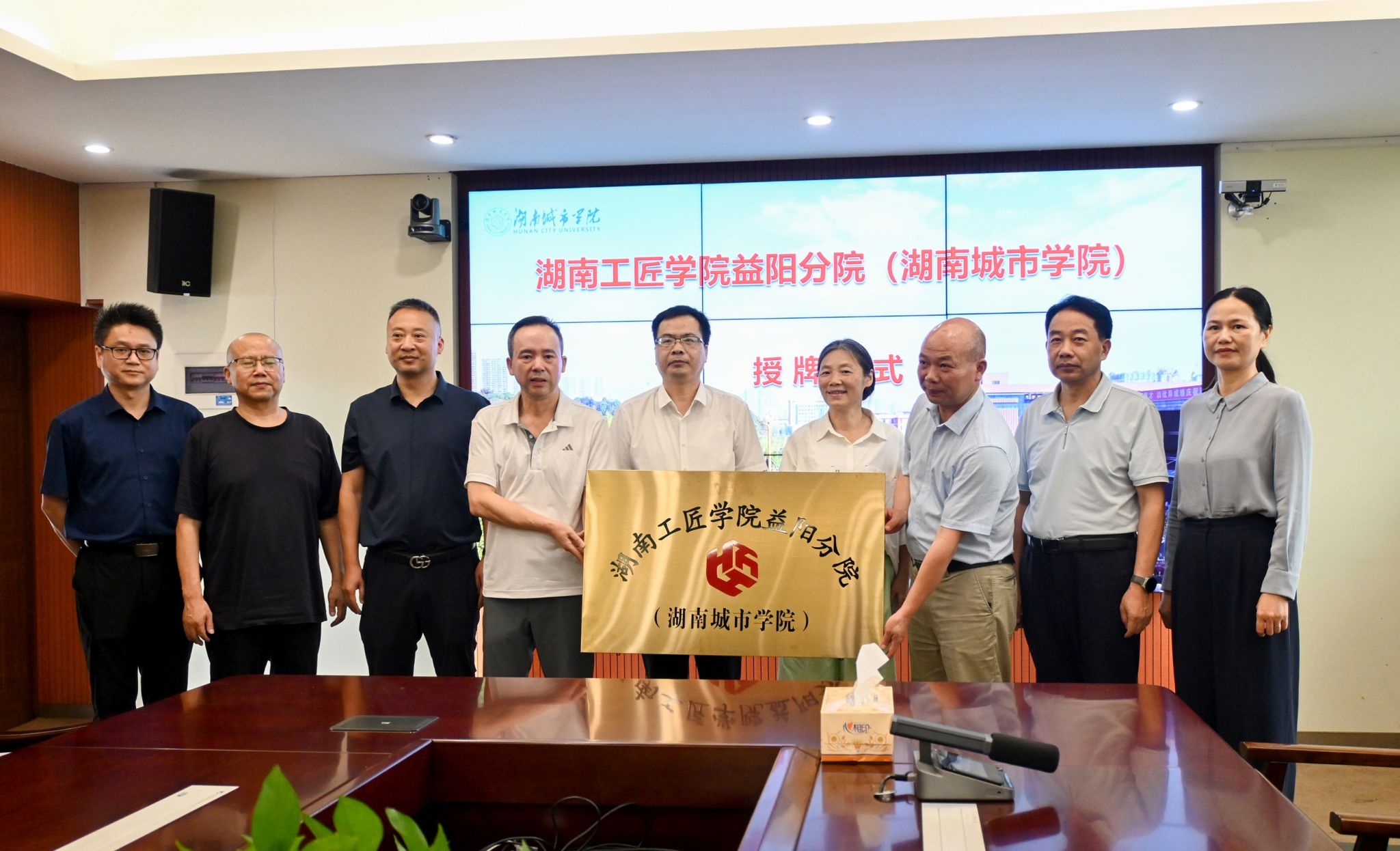 实习记者 李文雅 范语乔 6月24日,湖南工匠学院益阳分院授牌仪式在办公楼一会议室举行。益阳市人大常委会副主任、市总工会主席杨丽萍,益阳市总工会党组书记、副主席徐志成,校党委副书记袁志成出席仪式。仪式由党委委员、组织部部长吕贤军主持。