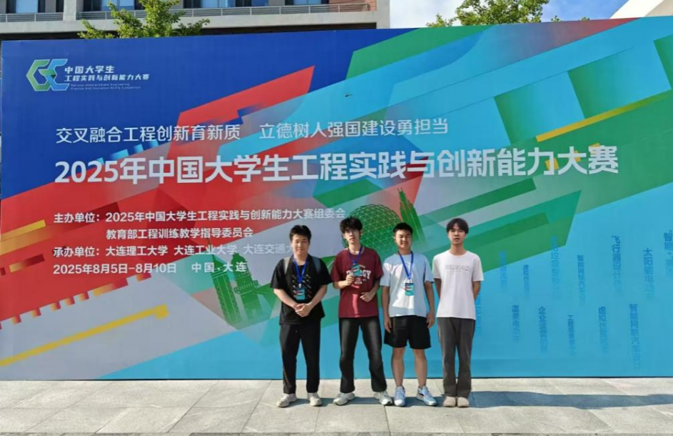 本网讯(通讯员 朱国)近日,2025年中国大学生工程实践与创新能力大赛在大连举行。经过两轮激烈角逐,由我校机械与电气工程学院朱国老师、信息与电子工程学院陈浩老师联合指导,机械电子工程专业和人工智能专业的刘子童、夏志好、李振林、彭昶浩四位本科生设计制作的“智能搬运小车”,最终斩获全国一等奖。在此前的湖南省大学生工程实践与创新能力大赛暨全国选拔赛中,我校学子荣获省级一等奖2项、二等奖3项、三等奖6项。