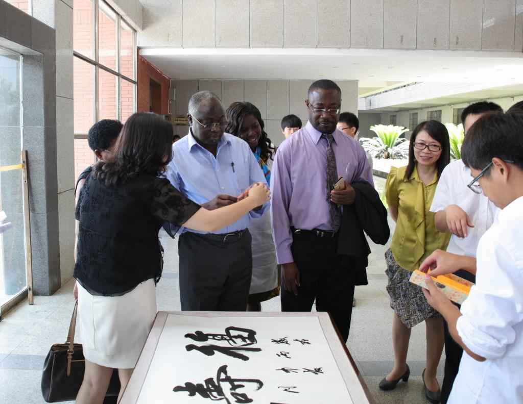 仪式结束后,加纳海岸角大学代表团参观了我校道德经文化墙、图书馆和文学与新闻传播学院。(文彦波)